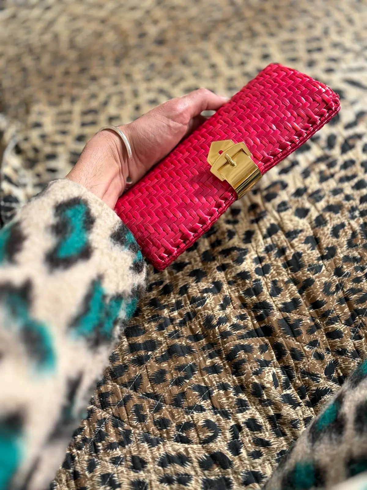 Red wicker clutch